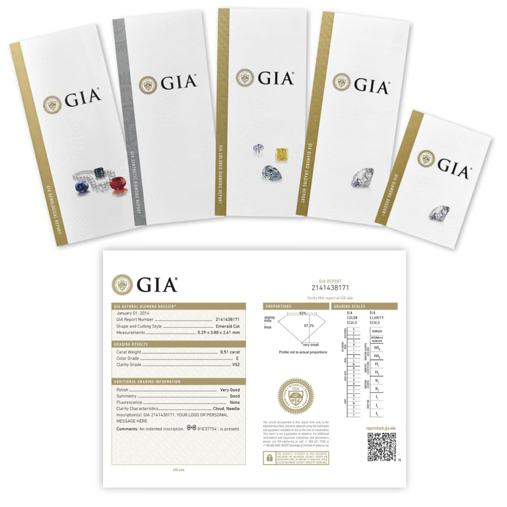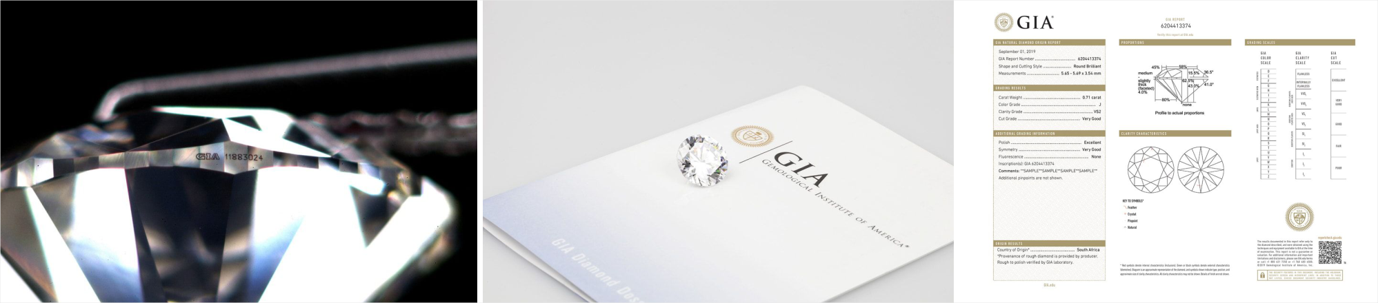 Після проходження всіх етапів перевірки інформація разом із масою та оцінками 4С з'являється у звіті GIA. Це найбільш технологічна розширена оцінка діаманта з усіх можливих. Він забезпечує унікальні дані всіх параметрів кристала та говорить про його якість. Онлайн перевірка звіту дозволить переконатися в його якості та в тому, що отримана інформація відповідає отриманій у звіті. Всі дані про перевірені камені зберігаються в базі даних GIA. Як додатковий параметр безпеки, камінь із класифікацією діамантів GIA може бути додатково підписаний на рундисті унікальним номером, особистим повідомленням або логотипом. Лазерний напис дозволяє легко ідентифікувати камінь, тому що номер, нанесений на алмаз, співпадатиме з номером звіту лабораторії. Причому кожен діамант маркування має строго індивідуальне з унікальним номером.