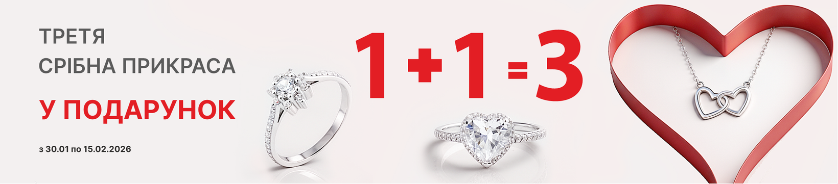 - При купівлі двох ювелірних прикрас зі срібла – Ви отримаєте третю прикрасу зі срібла в подарунок *