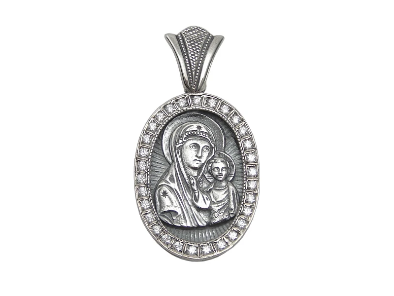 Підвіска-ладанка «Божа Матір Казанська» зі срібла 925° з фіанітами, арт. Ладанка 28 (арт. Ладанка 28)