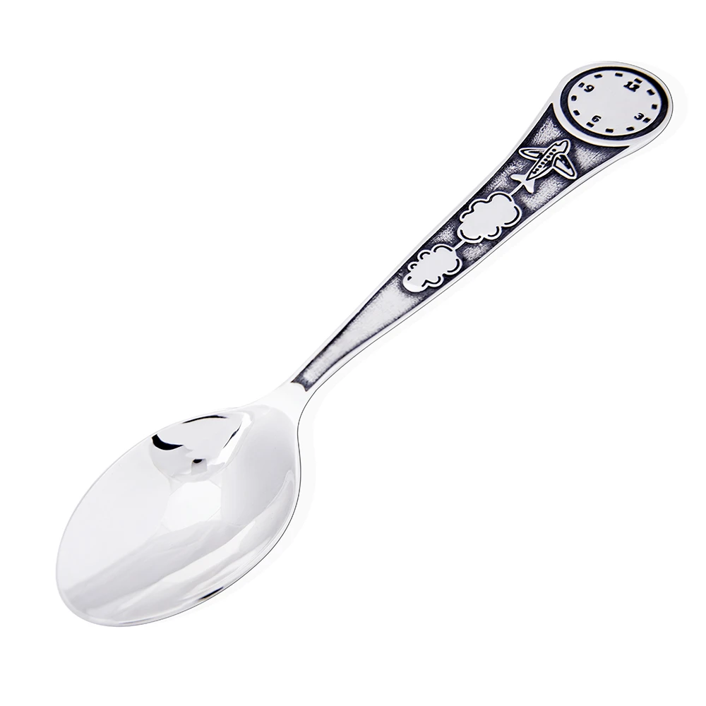 Серебряная детская ложка "Часики". В данной ложке циферблат без стрелок предназначен для гравировки времени рождения ребенка.