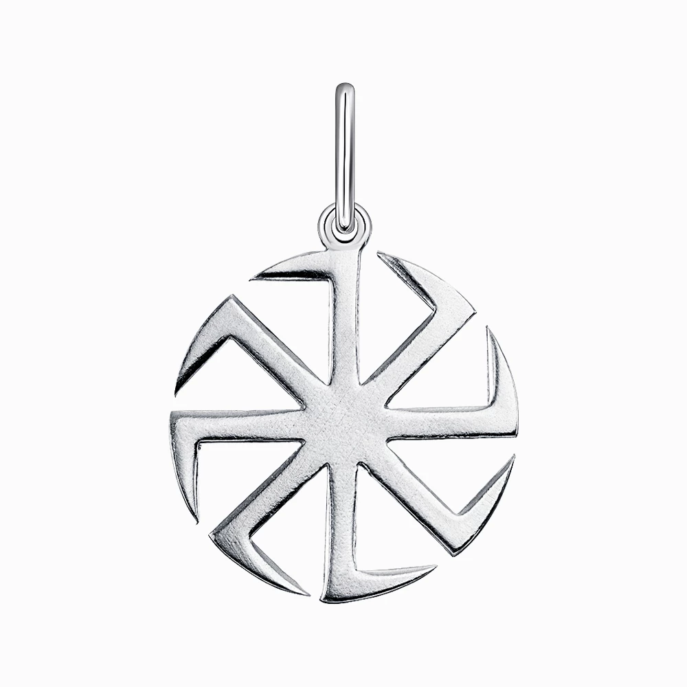 <p><strong>Размеры:</strong></p> <p>длина с ушком - 3 см;</p> <p>без ушка – 2,3 см;</p> <p>ширина - 2 см;</p> <p>ушко – 4 мм</p> <h2><strong>Серебряный подвес </strong></h2> <p>Подвес состоит из серебра 925 пробы, обработан родием. Аксессуар выполнен в форме древнего славянского солярного символа. Его называют «колядник» или «коловрат». Данный сакральный символ использовался при изготовлении оберегов. Считалось, что он имеет способность защитить владельца от бед, несчастий, воздействия темных сил. Коловрат олицетворяет вечный цикл жизни, а также соотносится с движением солнца.</p> <p>Украшение относится к категории унисекс, его актуально сочетать с повседневным гардеробом. Изделие носят с одеждой любого стиля – от классики до кэжуал. К аксессуару на нашем сайте вы можете подобрать стильную серебряную цепочку или ювелирный шнурок, которые предлагаются в большом разнообразии</p>