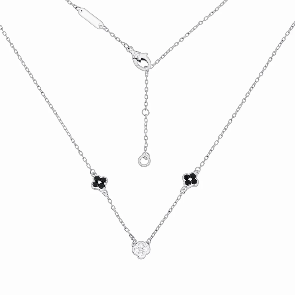 Кольє "Конюшина" із чорного та білого срібла 925° з чорним та білим фіанітом/куб.цирконієм, арт. К-ч/б-22-0