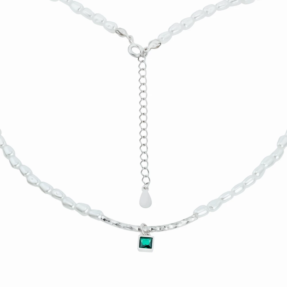 <p><strong>Размер:</strong></p> <p>жемчужины - 4*05 мм; </p> <p>фианит - 6*6 мм; </p> <p>декоративная часть 30*2 мм</p> <h2><strong>Серебряное колье с жемчугогом</strong></h2> <p>Колье из жемчуга — это воплощение классической элегантности, которая всегда остается актуальной. Нежный перламутровый блеск придает образу мягкость и благородство, а сам жемчуг издавна символизирует чистоту, мудрость и внутреннюю гармонию. В центральной части колье расположена изящная подвеска с зеленым фианитом, которая придает композиции свежесть и естественный акцент, создавая изысканный контраст с мягким сиянием белых бусин.</p> <p>Украшение с шпрингельной застежкой и удлинительной цепочкой из серебра 925 пробы, благодаря чему длину легко настроить под любой вырез. Колье прекрасно подходит к романтическим платьям, минималистичным светлым образам или вечерним лукам в естественных тонах. Изделие идеально сочетается с жемчужными серьгами, серебряными украшениями или аксессуарами с зелеными вставками.</p>