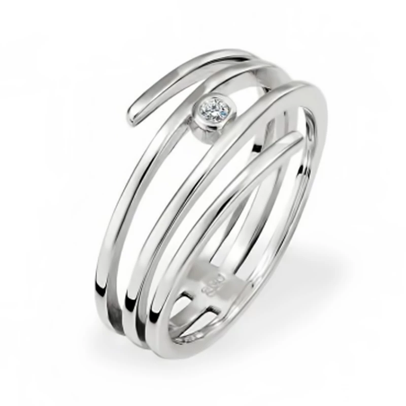 <p><strong>Размер:</strong></p> <p>ширина шинки – 5 мм</p> <p>размер вставки – 2 х 2 мм</p> <h2><strong>Серебряное кольцо с фианитами</strong></h2> <p>Это удивительное кольцо из серебра 925 пробы — смелое воплощение стиля и минимализма. Изящный многослойный дизайн создает эффект объемного обвивания вокруг пальца, что придает украшению динамики и уникальности. Акцентом композиции выступает блестящий фианит, закрепленный в лаконичном глухом касте, подчеркивающий чистоту линий и изящную асимметрию формы. Родиевое покрытие обеспечивает зеркальный блеск и защиту от потемнения, сохраняя безупречный вид изделия. Идеальный выбор для тех, кто стремится выразить свою индивидуальность через нестандартные, но элегантные ювелирные решения.</p>