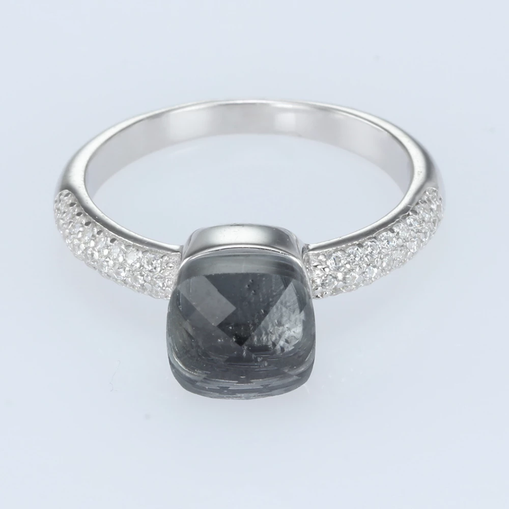 <p><strong>Размеры:</strong></p> <p>ширина шинки – 3 мм;</p> <p>размеры вставки - 7 х 7 мм</p> <h2><strong>Серебряное кольцо с</strong><strong>о</strong><strong> стеклом</strong></h2> <p>Изящное кольцо изготовлено из родированого серебра 925 пробы. Есть вставки – фианит (кубический оксид циркония) и стекло (центральная вставка).</p> <p>Шинка кольца гладенькая и отполированная, справа и слева от центральной вставки ее украшают фианиты. Камни удерживаются в закрытой оправе с помощью закрепки «паве». Данное крепление имеет интересную особенность. Камни расположены так, что создаётся эффект непрерывного сплошного мерцания. В итоге подобное оформление придает кольцу праздничный и нарядный вид. Удачным является и контраст темного стекла и прозрачных фианитов на фоне серебристого драгметалла.</p> <p>Украшение имеет универсальное применение, - оно подходит для будней и праздников. Его можно носить со всеми стилями одежды. В комплекте с кольцом предлагаем приобрести серебряные серьги-конго со стеклом.</p>