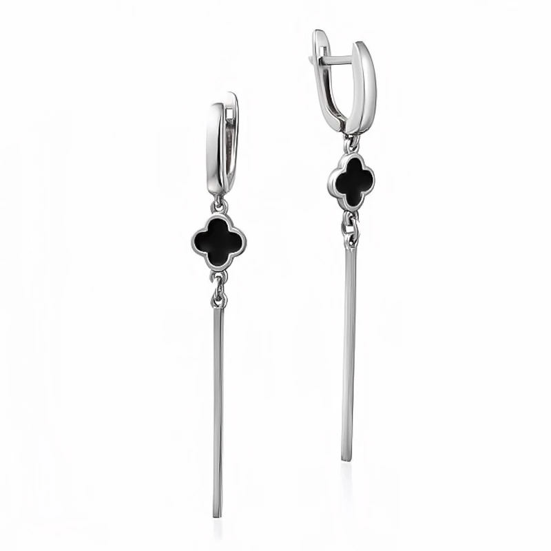 Сережки-підвіски «Конюшина» з чорною емаллю зі срібла 925°, арт. 2491р (арт. 2491р)