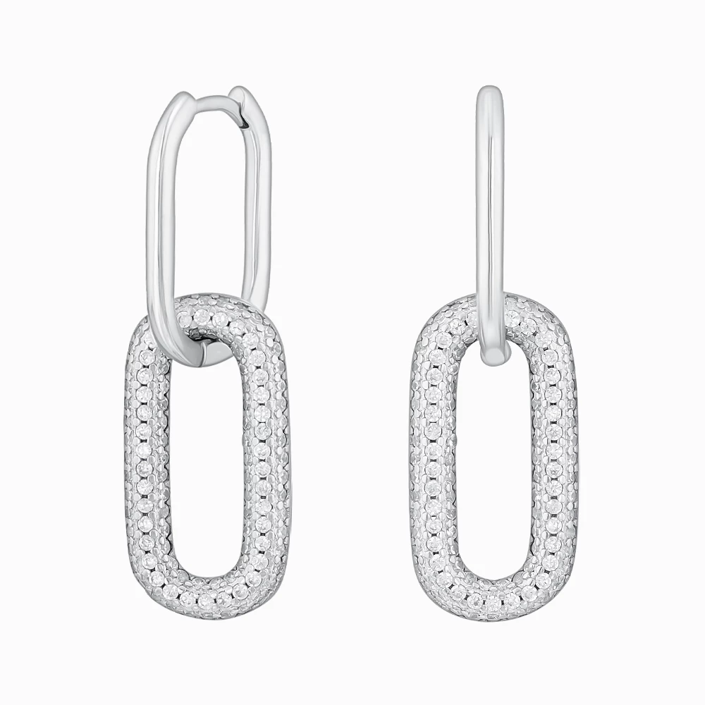<p><strong>Размеры:</strong></p> <p>штифт – 5 мм</p> <p>длина – 32 мм</p> <p>ширина – 10 мм</p> <h2><strong>Серебряные серьги-подвески с фианитами</strong></h2> <p>Серьги-подвески из серебра 925 пробы, украшенные фианитами – изысканный и стильный аксессуар, который подчеркнет оригинальный вкус их владелицы. В выразительном дизайне гармонично сочетаются блеск глянцевого металла и яркое мерцание камней.</p> <p>Драгоценное изделие состоит из двух соединенных между собой звеньев. Верхнее звено имеет гладкую поверхность и выполняет функцию швензы, фиксируясь в мочке уха с помощью незаметной для окружающих, удобной и надежной застежки-конго. Нижнее звено инкрустировано прозрачными фианитами в закрепке паве, из-за чего создается эффект сплошного искрящегося сияния. Благородный металл обработан родием, поэтому украшение имеет характерный платиновый оттенок и зеркальный блеск, который оно будет долго сохранять.</p> <p>Эффектные серьги достойны не только повседневного, но и вечернего образа. Подойдут под офисную одежду, элегантные костюмы, утонченные платья и наряды в стиле кэжуал. Сделайте выбор в пользу этой модели, если хотите пополнить свою коллекцию ювелирных изделий трендовым украшением.</p>