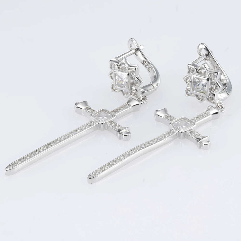 Срiбнi сережки-підвіски з фіанітом/куб.цирконіем