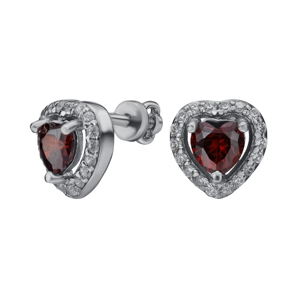 <p><strong>Размер:</strong></p> <p>Длина крючка 10мм</p> <p>Размеры декоративной части 10мм/10мм</p> <h2><strong>Серебряные серьги-пусеты с фианитом</strong></h2> <p>Серьги-пусеты представлены в серебре 925 пробы и выполнены в ефектном дизайне. Декоративная часть представлена в виде сердца с центральной вставкой роскошной по цвету фианита насыщенного красного цвета и инкрустированного дополнительно сияющими фианитами белого цвета. Вставки закреплены кармезиновым кастом, который надежно фиксирует их и выглядит очень эстетично. Фианит – это камень не несущий внутреннего воздействия на человека, это сосуд, который каждый может наполнить по своему усмотрению. Он становится носителем энергии своего обладателя. Благодаря технологии родирования изделие имеет привлекательный металлический оттенок и блеск. Застежка в данной модели - винтовая, она надежна и удобна. Серьги станут стильным и акцентным дополнением к любому вашему образу, а комплектом к ним можно добавить кольцо.</p>