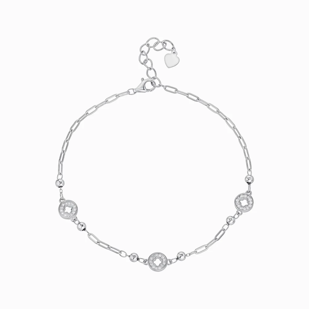<p><strong>Размеры:</strong></p> <p>Ширина плетения 2мм</p> <p>Диаметр декоративных частей 5мм</p> <h2><strong>Серебряный браслет с фианитом</strong></h2> <p>Нежная модель браслета выполнена в серебре 925 пробы. Дизайн браслета сочетает элегантные звенья и размещенные на них декоративные части в виде шаров и кругов. Круги представлены со вставками фианитов, которые надежно фиксирует закрепка каре. Благодаря технологии родирования изделие имеет красивый металлический оттенок и блеск. Застежка – карабин, данный тип застежки является практичным и надежным, а за счет небольших размеров гармонично вписывается в общий дизайн украшения. Браслет имеет дополнительные звенья, позволяющие регулировать размер под ваше запястье. Браслет подойдет как к повседневному наряду так и к вечернему или праздничному. За счет лаконичного дизайна его можно совмещать с другими украшениями в серебре.</p>