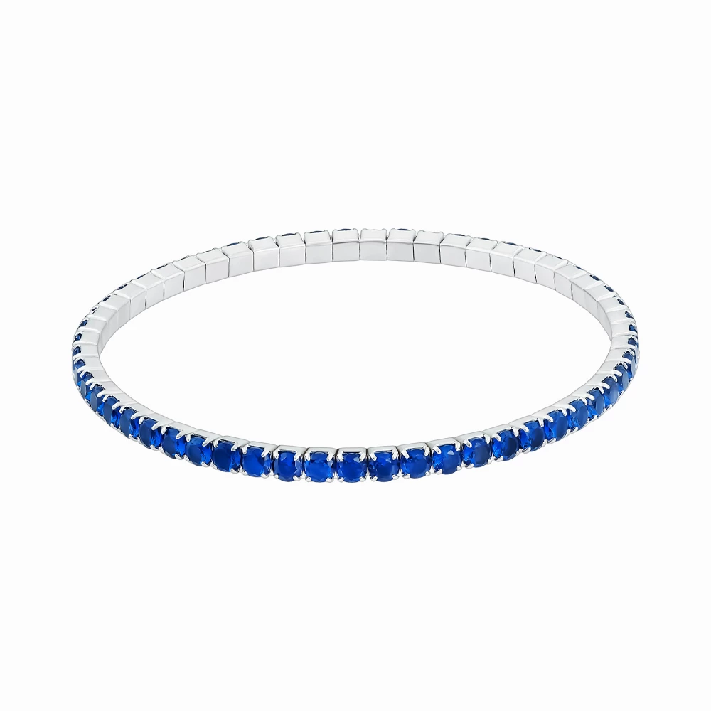 <p><strong>Размер:</strong></p> <p>ширина – 3 мм</p> <h2><strong>Серебряный браслет с фианитами</strong></h2> <p>Теннисный браслет, представленный в классическом дизайне, изготовлен из серебра 925 пробы. Его гибкая основа состоит из множества звеньев, каждое из которых инкрустировано ярко-синим фианитом круглой огранки, закрепленным крапанами. Таким образом формируется сплошная дорожка, увлекающая удивительным мерцанием и яркостью. Родирование украшения, придающее серебру сияние и выразительный оттенок, подчеркивает изысканность этой модели. Насыщенный цвет браслета гарантирует его эффектный вид в повседневном или вечернем образе, ведь его несложно комбинировать с разными стилями одежды и элементами наряда. Такая драгоценность гармонично сочетается как с «холодными», так и «теплыми» оттенками, одинаково хорошо подходит и блондинкам, и брюнеткам.</p>