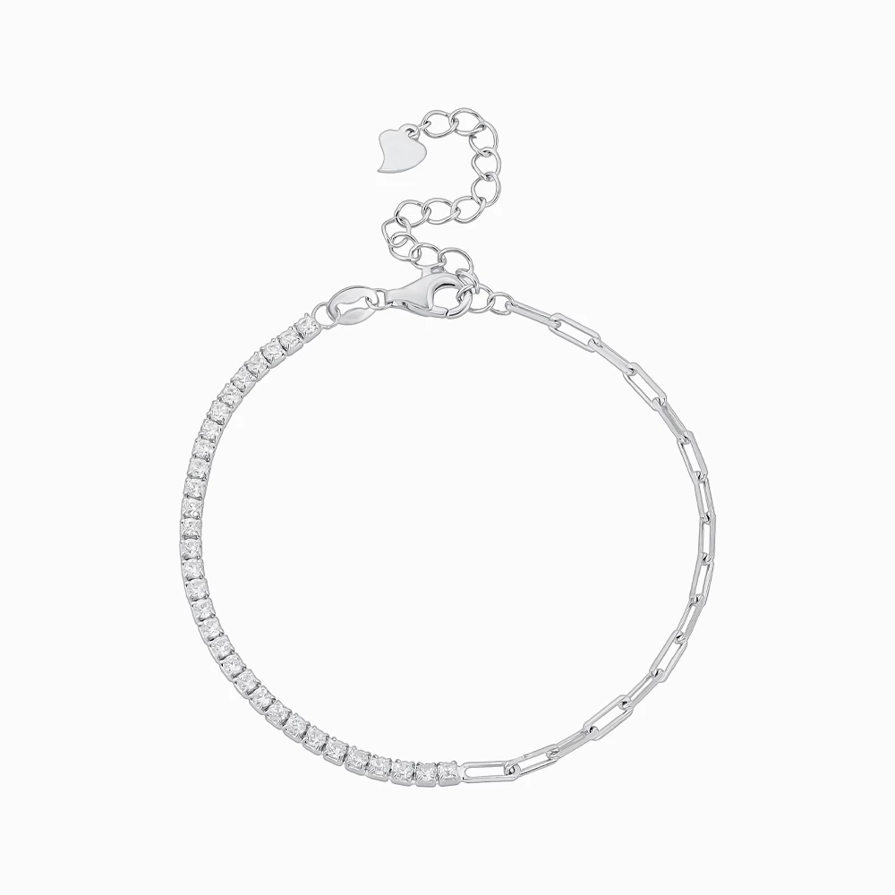 <p><strong>Размеры:</strong></p> <p>Ширина браслета 2мм.</p> <h2><strong>Серебряный браслет плетение фантазийное </strong></h2> <p>Эффектная модель браслета выполнена в серебре 925 пробы. По дизайну браслет поделен на две части. Одна часть сделана в формате теннисного браслета и имеет вставки сияющих фианитов. Вставки закреплены крапановой закрепкой, которая надежно фиксирует фианиты и максимально открывает их для света. Вторая часть представлена цепной, где совмещаются между собой звенья по типу якорного плетения. Благодаря технологии родирования изделие имеет красивый металлический оттенок и блеск. Застежка – карабин, данный тип застежки является практичным и надежным, а за счет небольших размеров гармонично вписывается в общий дизайн украшения. Браслет имеет дополнительные звенья, позволяющие легко регулировать размер под ваше запястье. Браслетом можно легко стилизовать любой ваш образ и сделать его непревзойденным.</p>