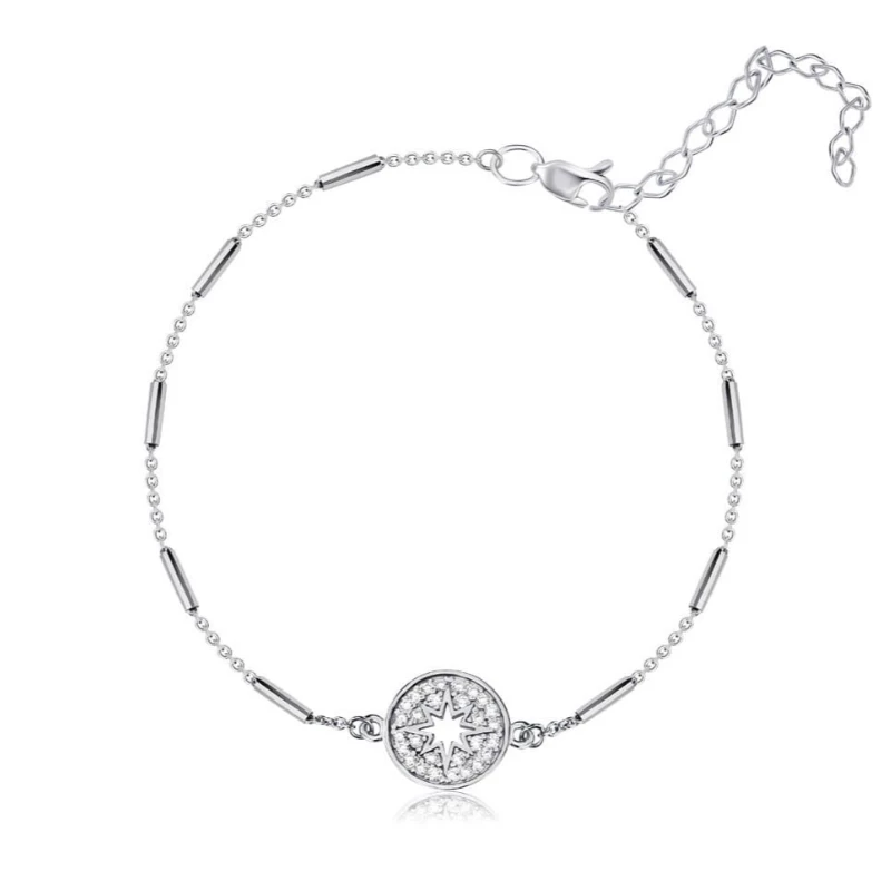 <p><strong>Размер:</strong></p> <p>Ширина – 1 мм</p> <p>Декоративная часть – 12 мм х 13 мм</p> <h2><strong>Серебряный браслет с фианитом</strong></h2> <p>Нежный аксессуар из родированного серебра 925 пробы комбинирует практичное якорное плетение с длинными сияющими звеньями. Центральным элементом выступает круг, в центре которого изображена звезда, которая дополнена фианитами. Она подчеркивает стремление к росту в любой сфере и подчеркивает умение всегда верить в лучшее. Аксессуар имеет карабиновый замок и его размер можно регулировать благодаря наличию дополнительных звеньев. Браслет станет идеальным дополнением образов на каждый день и праздничного наряда</p>