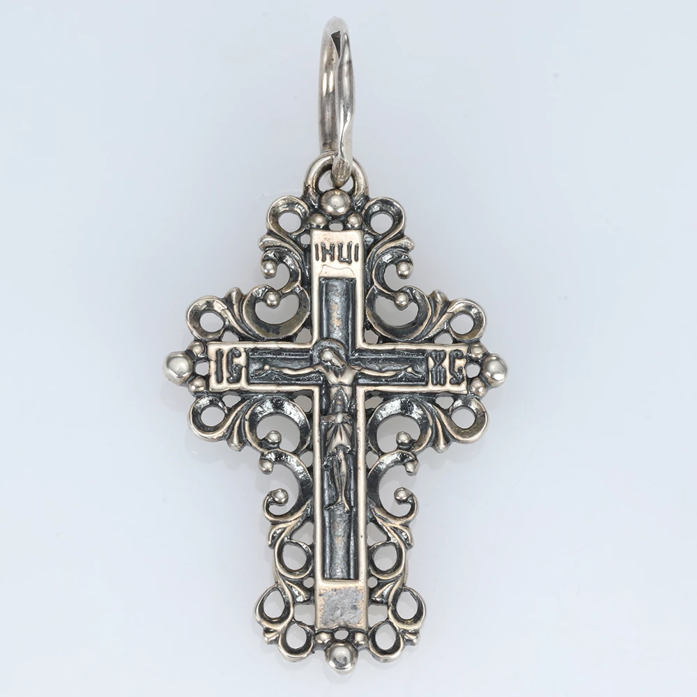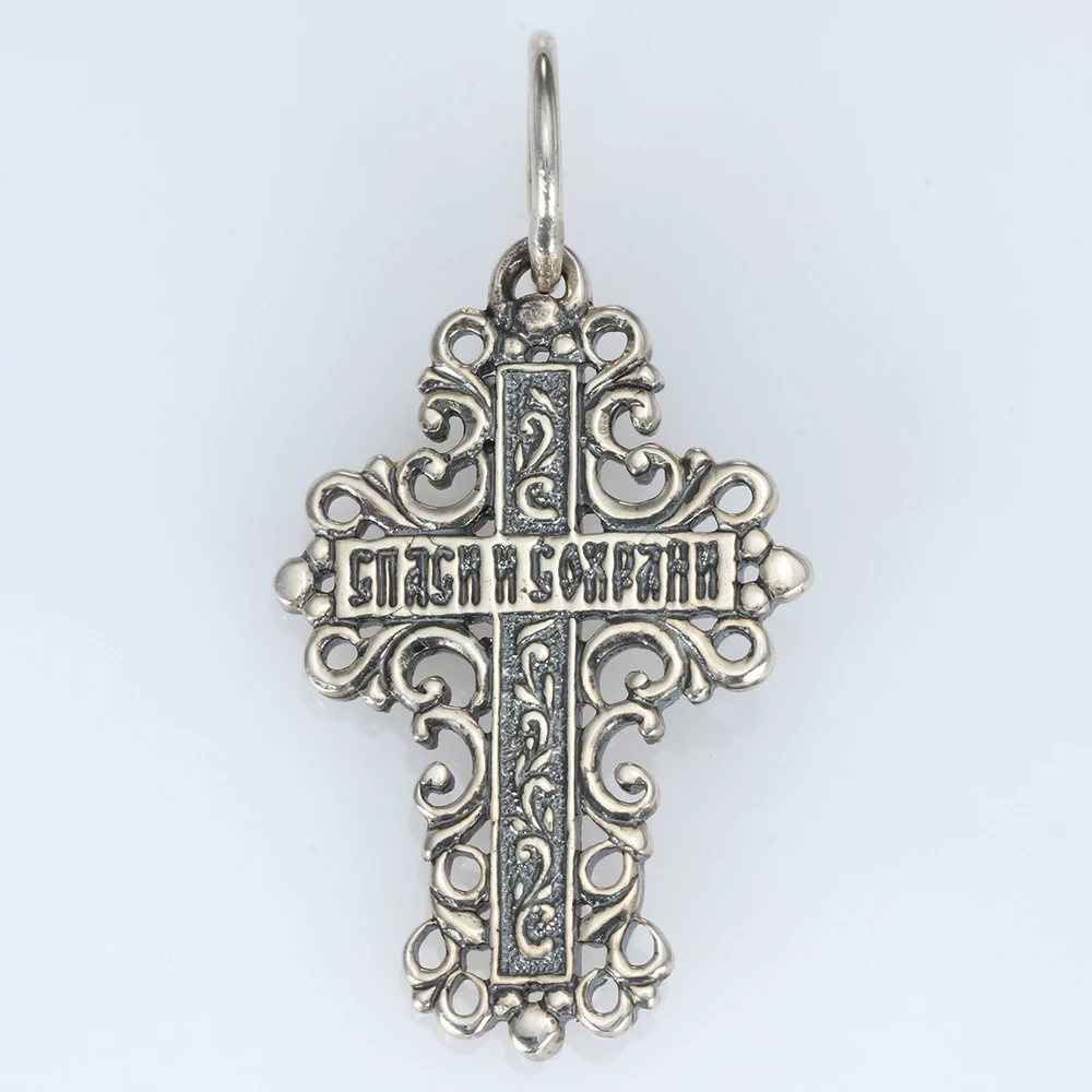 <p><strong>Размеры:</strong></p> <p>Ширина 18мм</p> <p>Высота с ушком 31мм</p> <p>Высота без ушка 25мм</p> <h2><strong>Серебряный крестик.</strong></h2> <p>Изысканная и сдержанная модель крестика выполнена в серебре 925 пробы без вставок. Крестик представлен в лаконичном исполнении с ровными краями, окруженными красивыми узорами, в свою очередь образующими крест. В середине расположено распятие, с тыльной стороны есть надпись Спаси и Сохрани. Крестик представлен с чернением, за счет этого он имеет изысканный винтажный вид. К нему можно подобрать цепочку с элементами чернения или шнурок.</p>