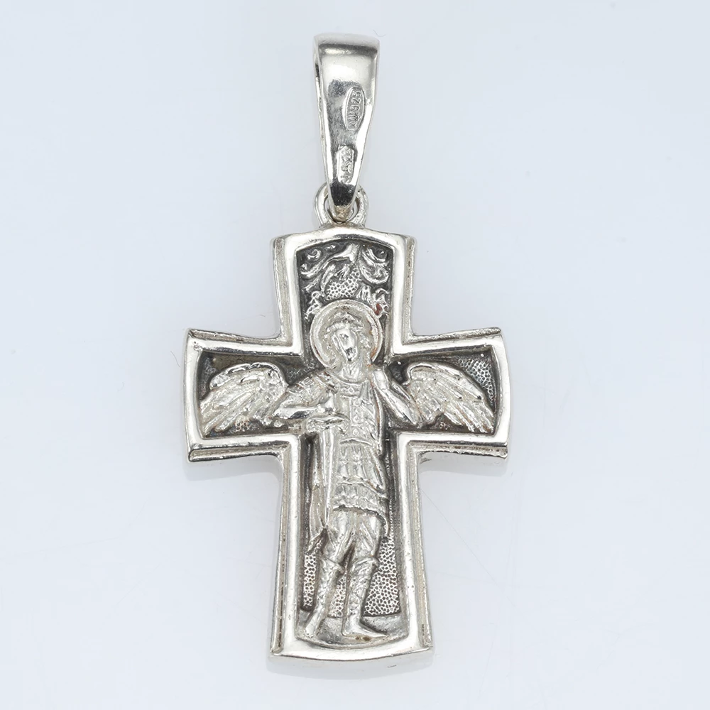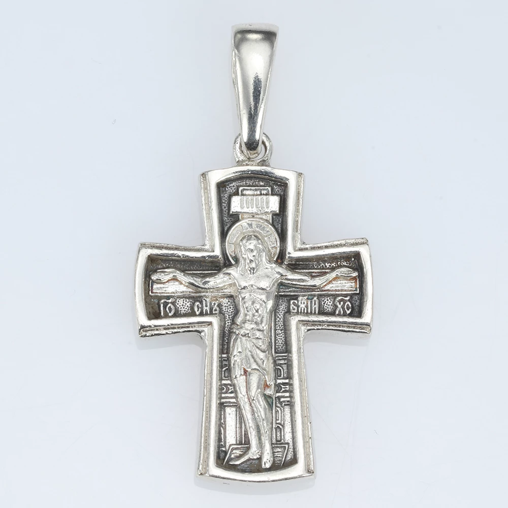 <p><strong>Размеры:</strong></p> <p>Длина – 23 мм</p> <p>Ширина – 16 мм</p> <p>Длина ушка – 10 мм</p> <p>Ширина ушка – 3 мм</p> <h2><strong>Золотой крестик</strong></h2> <p>Массивное эффектное украшение изготовлено из серебра 925 пробы с использованием чернения, что подчеркивает рельеф и создает эффект старинного изделия. Крест имеет изображение на двух сторонах, а именно Распятие Христово и Ангела. Ушко имеет эффектно сияющую глянцевую поверхность. Изделие лучше всего совмещать с фантазийной цепочкой или кожаным шнурком со вставками драгоценного металла. Крест идеально подходит мужчинам, ведь он эффектный и крупный</p>