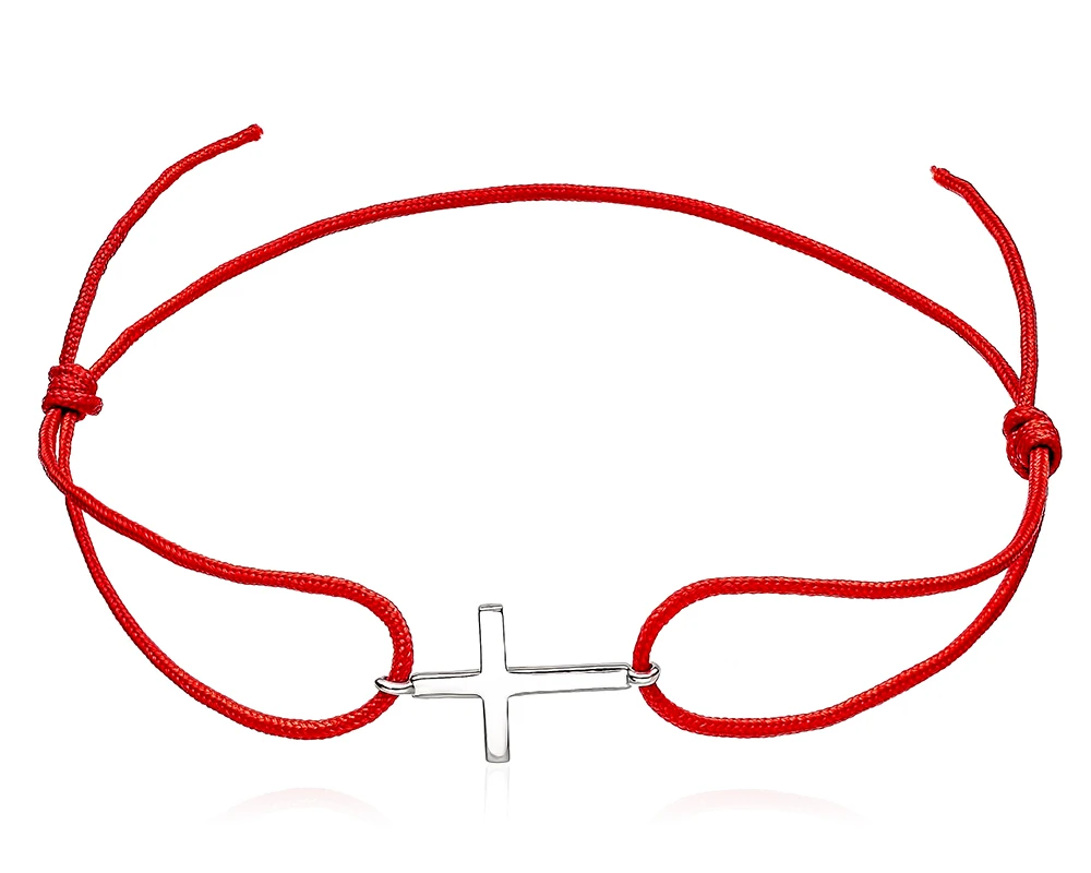 Браслет с красной нитью и серебряной вставкой "Крестик".