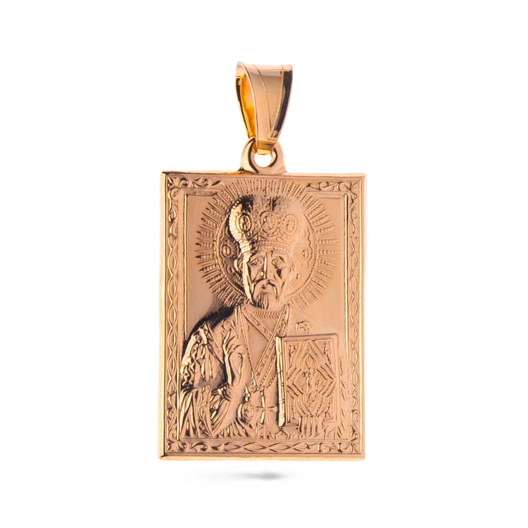 Золотая ладанка Святой Николай Чудотворец. Святой Николай Чудотворец считается покровителем моряков и путешествующих. Размеры изделия, мм: ширина - 17; высота - 26.