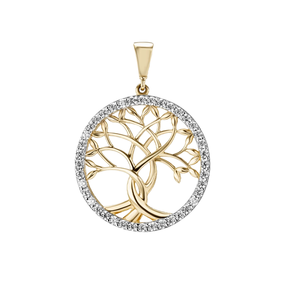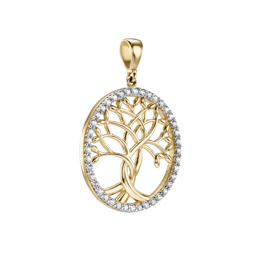 <p><strong>Размер:</strong></p> <p>Высота без ушка 22 мм</p> <p>Высота с ушком 26 мм</p> <p>Ширина 19 мм</p> <p>Размеры ушка 5мм*3мм</p> <h2><strong>Золотая подвеска с фианитом.</strong></h2> <p>Изящная подвеска выполнена в желтом золоте 585 пробы со вставками фианитов и представлена в виде дерева жизни, корни которого переплетаются. Вставка надежно закреплена корнеровой закрепкой, благодаря этому фианит имеет невероятное сияние. Дерево жизни символизирует связь рода, а молодые листочки на нем являются символом новой жизни. Подвес станет отличным и символическим подарком для самого дорогого человека. К подвесу можно подобрать цепочку с нежным плетением, например, лав, венецианское или мона лиза.</p>