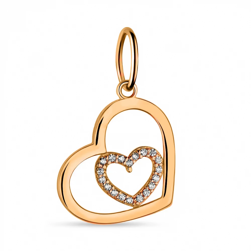 <p><strong>Размер:</strong></p> <p>длина с ушком – 25 мм</p> <p>длина без ушка – 18 мм</p> <p>размір ушка – 7 х 4 мм</p> <p>ширина – 15 мм</p> <h2><strong>Золотая подвеска с фианитами</strong></h2> <p>Нежная подвеска из красного золота 585 пробы. Ее изящный дизайн состоит из двух элементов, а именно из двух сердец, символизирующих единство и гармонию. Одно из сердец инкрустировано белыми фианитами, придающими украшению изысканного блеска и сияния. Благодаря классическому ушку, подвеску легко сочетать с разнообразными цепочками или ювелирными шнурками, что делает ее универсальным украшением. Этот аксессуар станет идеальным подарком для выражения искренних чувств и подчеркнет романтическое настроение, придавая любому образу нотки элегантности и стиля.</p>