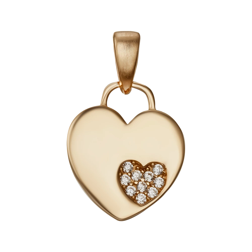 <p><strong>Размеры:</strong></p> <p>длина с ушком – 13 мм</p> <p>длина без ушка – 9 мм</p> <p>ширина – 15 мм</p> <p>ушко – 4 мм</p> <h2><strong>Золотая подвеска с куб. окс. циркония</strong></h2> <p>Подвеску-сердце из золота 585 пробы очаровательного красного цвета можно расценивать как символ любви, привязанности, страсти, верности и романтических чувств. Украшение имеет почти полностью гладко отполированную поверхность, которая блестит и отражает лучи света. В нижней части драгоценности сбоку из фианитов выложено небольшое сердце. Прозрачные минералы установлены в металл с помощью закрепки Паве, позволяющей подчеркнуть сияющую красоту камней. Подвеска в таком дизайне достойна того, чтобы преподнести ее в качестве подарка дорогому человеку. Украшение можно презентовать на День всех влюбленных, день рождения, годовщину свадьбы или другой праздник. Драгоценный аксессуар подойдет к повседневной одежде разных стилей и вечерним нарядам в сочетании с другими ювелирными изделиями.</p>
