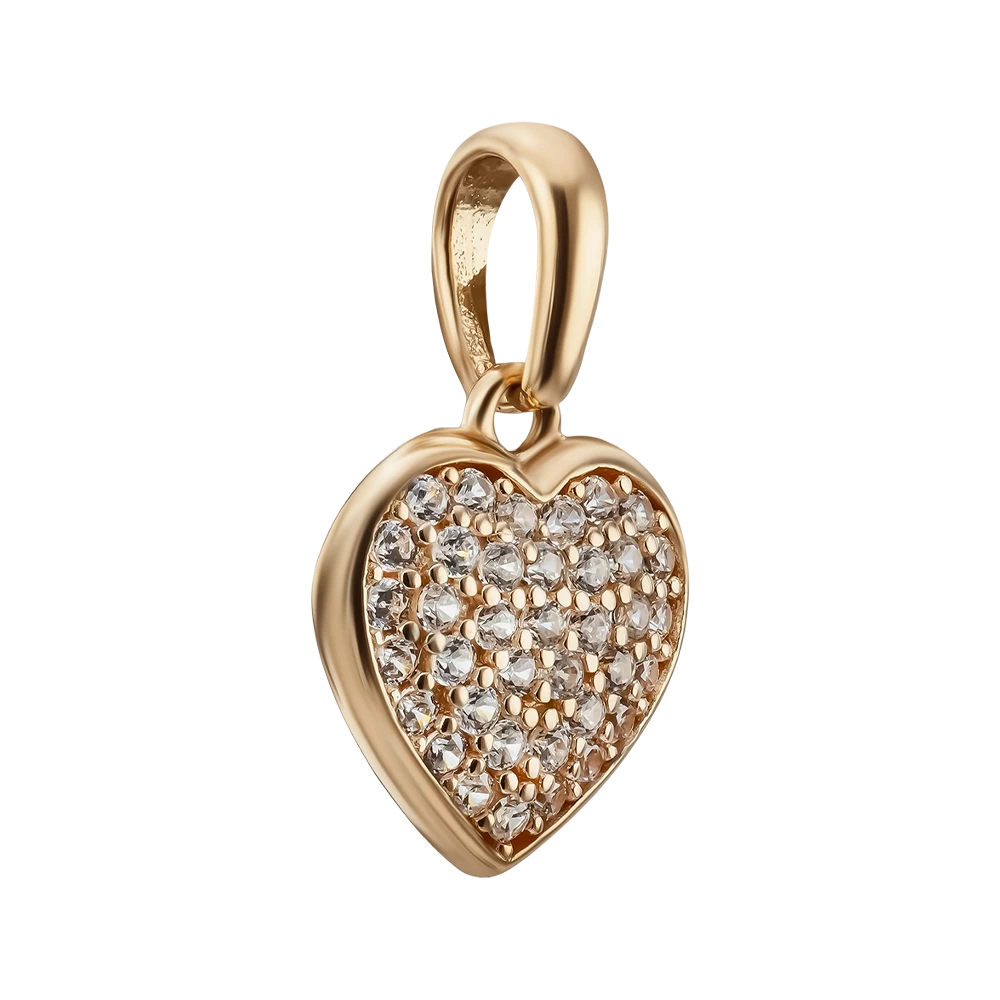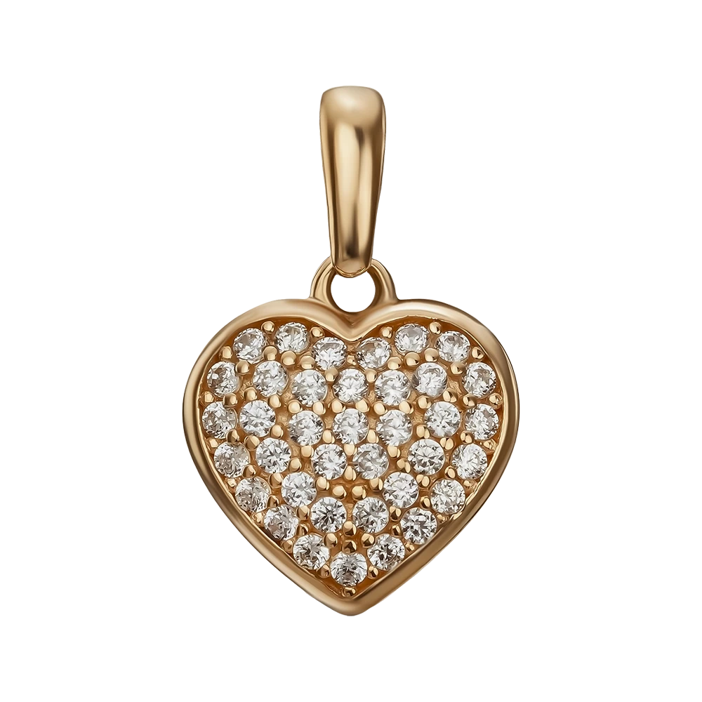 <p><strong>Размеры:</strong></p> <p>длина с ушком – 15 мм</p> <p>длина без ушка – 10 мм</p> <p>ширина – 9 мм</p> <p>ушко – 5 мм</p> <p>вставка (куб. окс. цир.) – 1 мм</p> <h2><strong>Золотая подвеска с куб. окс. циркония</strong></h2> <p>Подвеска в форме сердца изготовлена из красного золота 585 пробы. Ее поверхность густо покрыта прозрачным кубическим оксидом циркония. Благодаря фиксации кристаллов закрепкой Паве создается потрясающий эффект сплошного мерцающего полотна, которое невероятно сияет и переливается. Драгоценность в таком исполнении олицетворяет верность, любовь, восхищение, страсть. Именно поэтому эту подвеску можно подарить дорогому сердцу человеку: любимой девушке, жене, матери, дочери или близкой подруге. Она будет напоминанием об искренних чувствах того, от кого адресован такой презент. Украшение выглядит нарядно благодаря щедрой инкрустации искрящимися камнями, поэтому удачно вписывается в праздничный гардероб. Однако ювелирное изделие может стать хорошим дополнением к повседневному наряду.</p>