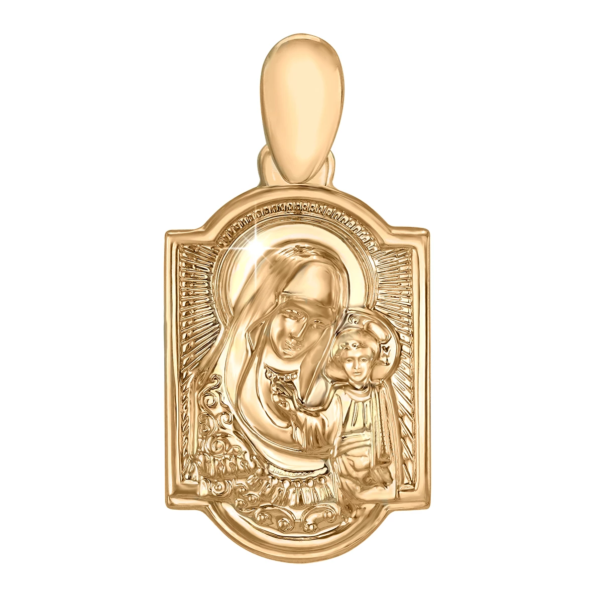 <p><strong>Размер:</strong></p> <p>Ширина 14мм</p> <p>Высота с ушком 30мм</p> <p>Высота без ушка 21мм</p> <h2><strong>Золотая подвеска-ладанка.</strong></h2> <p>Подвеска ладанка выполнена в красном золоте 585 пробы без вставок. На ладанке изображен образ Божьей Матери с маленьким Иисусом. К Божьей Матери обращаются с особыми молитвами – просят здоровья, защиты, помощи в трудных ситуациях, прощения грехов, а также благодарят за полученные блага. Ладанка представлена в необычной форме, вокруг образа расположены алмазные насечки, придающие приятное сияние изделию. Подвеска-ладанка будет гармонично смотреться как со шнурком так и с цепочкой.</p>