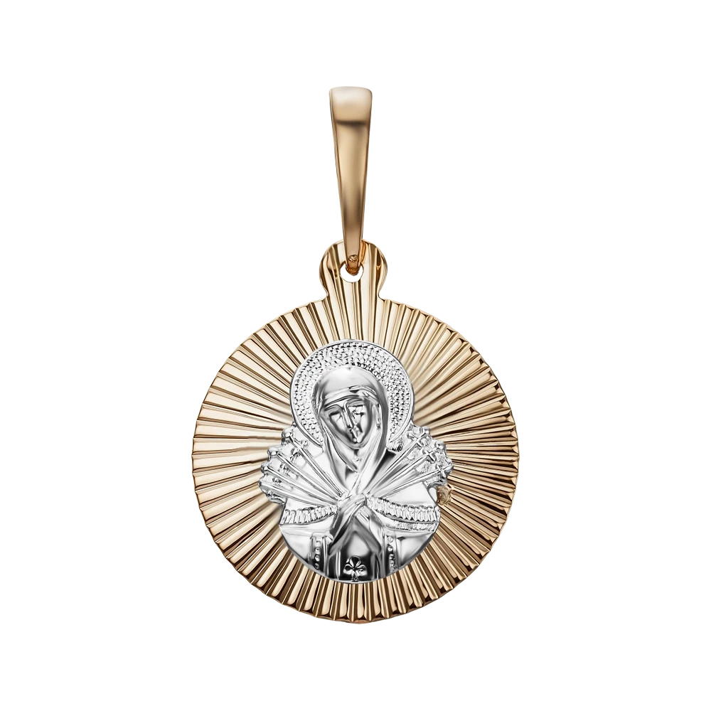 <p><strong>Размеры:</strong></p> <p>диаметр - 18 см</p> <p>ширина - 18 мм</p> <p>ушко - 6*10 мм</p> <h2><strong>Золотая подвеска-ладанка «Божья Матерь Семистрельная»</strong></h2> <p>Ладанка «Божья Матерь Семистрельная» станет не только изысканным украшением на каждый день, но и мощным оберегом от всего недоброго. Она смотрится невероятно стильно и современно благодаря контрастному сочетанию белого и красного золота 585 пробы. Техника декорирования «Алмазная грань» создает эффект непрерывного блеска, от которого невозможно отвести взгляд.</p> <p>Образ Божьей Матери Семистрельной защитит владелицу от завистливых взглядов и злых помыслов. Также она поможет избавиться от раздражительности, гнева и смягчит сердце. Эта ладанка идеально подойдет в качестве подарка близкому человеку на важное событие. На сайте можно с легкостью подобрать золотую цепочку к комплекту.</p>
