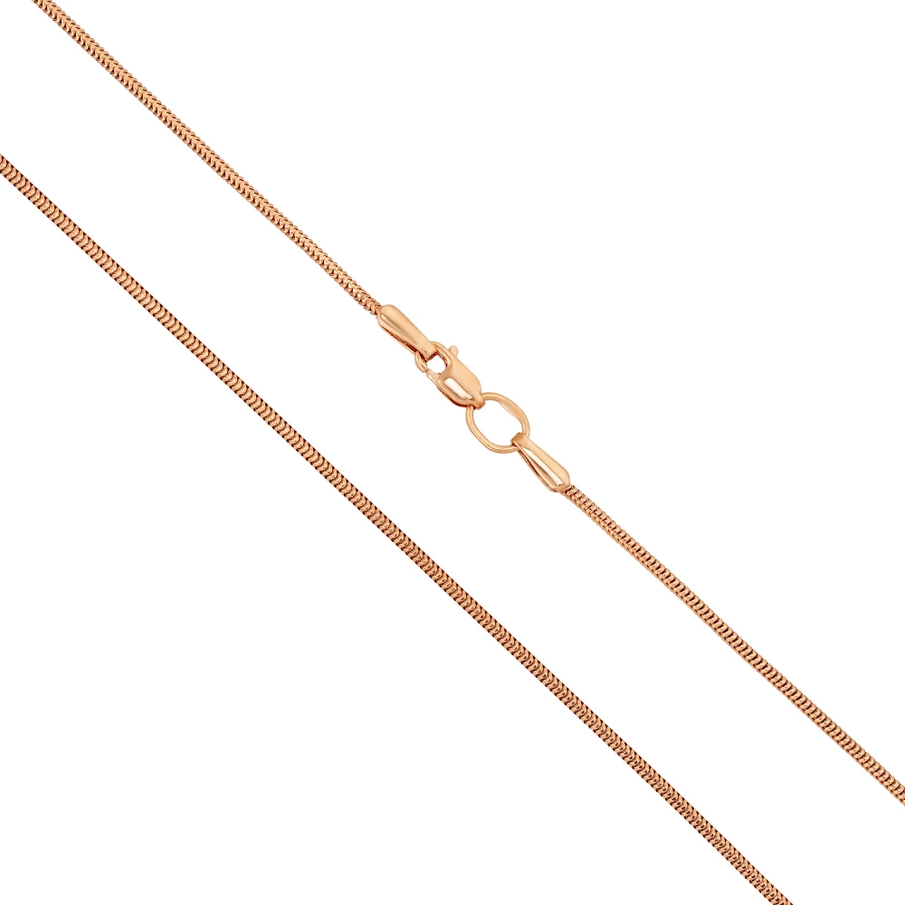 <p><strong>Размер:</strong></p> <p>ширина цепочки – 1 мм</p> <h2><strong>Золотая цепочка плетения снейк.</strong></h2> <p>Стильная цепочка Снейк из высококачественного красного золота 585 пробы. Плетение отличается гладкой поверхностью и плотной вязкой звеньев, оно способно стать элегантным акцентом для любого Вашего образа. Застежка выполнена в виде карабинового замка, гарантирующего надежное крепление цепочки. Такое лаконичное украшение станет отличным выбором как для праздничного образа, так и для повседневного использования. Она придаст Вам утонченного шарма и уникальности. Также к такой цепочке легко подобрать подвеску, что позволит Вам создавать много разных композиций.</p>