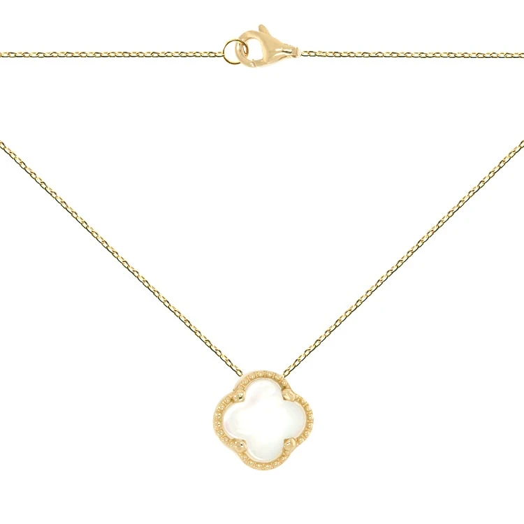 Золотое колье с перламутром "Клевер".