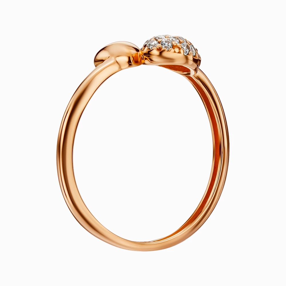 <p><strong>Размеры :</strong></p> <p>ширина шинки - 1 мм</p> <p>размер вставки(фианит) - 1мм</p> <p>размер декоративной части - 8мм х 8мм</p> <p><strong>Золотое кольцо с куб. окс. циркония </strong></p> <p>Необычное кольцо выполнено из драгоценного металла - красного золота 585 пробы. Также изделие украшено сверкающими камнями белого цвета - кубическим оксидом циркония. В центральной части изделия расположено две вставки, которые как будто соединяют между собой две части кольца. Одна из вставок имеет гладкую текстуру металла, а вторая инкрустирована россыпью сияющих камней, что создает контраст и привлекает внимание. Необычный дизайн кольца подчеркнет Ваш уникальный стиль и разбавит любой образ как в повседневной жизни, так и в праздничной обстановке. Изделие можно сочетать с другими украшениями, создавая при этом трендовые комбинации.</p>
