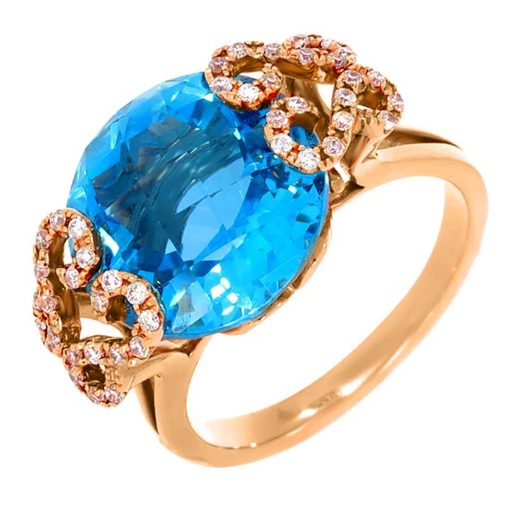 <p><strong>Размер:</strong></p> <p>ширина шинки – 2 мм</p> <p>диаметр вставки - 27 мм</p> <p>высота каста - 10 мм</p> <h2><strong>Золотое кольцо с бриллиантами и топазом swiss blue</strong></h2> <p>Невероятное кольцо с бриллиантами и топазом, изготовленное из красного золота 585 пробы, является настоящим произведением ювелирного искусства. В центре украшения расположен волшебный топаз весом 11.65 карат, который поражает своей глубиной цвета и сиянием. По бокам центрального, голубого камня расположены бриллианты премиум огранки, создающие яркий акцент и подчеркивающие изысканность топаза. Все драгоценные камни надежно закреплены в касте, что гарантирует их долговечность. Это кольцо непременно будет привлекать восхищенные взгляды и подчеркнет безупречный вкус своей обладательницы.</p>