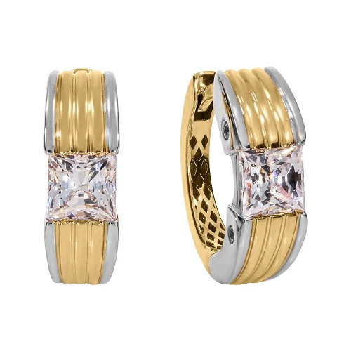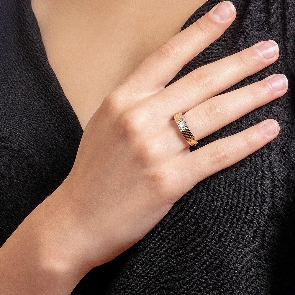 <p><strong>Размеры:</strong></p> <p>Ширина шинки мин/макс – 2</p> <p>Вставка – фианит</p> <p>Ширина каста – 2 мм</p> <p>Высота каста – 3 мм</p> <h2><strong>Золотое кольцо с куб.окс.циркония.</strong></h2> <p>Представленное изделие состоит из разных частей, объединенных между собой в единое целое. Таким образом, в нем есть элементы из желтого и белого родированного золота 585 пробы. Вставка – камень фианит, придающий украшению яркий разноцветный блеск и особую изысканность. Фианит или по-другому кубический оксид циркония, прочно закреплен в глухом касте. Такой тип крепления имеет повышенную надежность и удобство, поэтому носить данное кольцо – одно удовольствие.</p> <p>В комплекте можно купить золотые серьги с фианитом идентичного дизайна.</p> <p>Украшение подходит для ежедневного использования, вместе с тем, благодаря красоте и нарядности его можно использовать и для праздников. Аксессуар будет прекрасно гармонировать с любым стилем одежды.</p> <p>В комплекте также предлагаются золотые серьги-пусеты с фианитом.</p>
