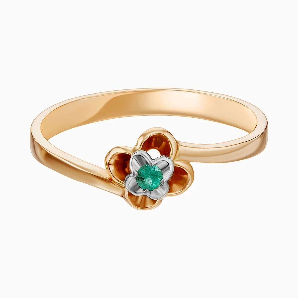 Кольцо из красного золота с изумрудом. Изысканное кольцо с изумрудом напоминает цветок. Необычная композиция из изумруда в обрамлении драгоценного металла образует неповторимый дизайн изделия. Почувствуйте себя совершенной вместе с этим украшением.