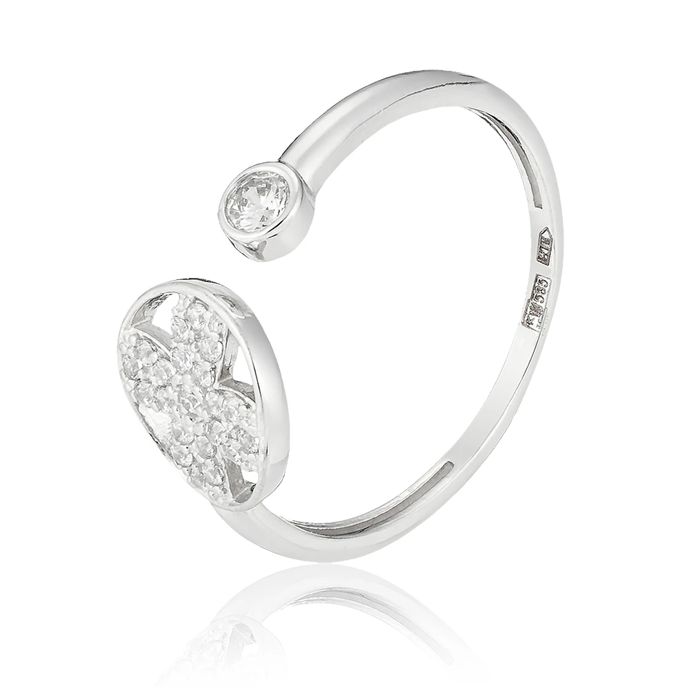<p><strong>Размер:</strong></p> <p>Ширина шинки 1мм</p> <h2><strong>Золотое кольцо с куб.окс.циркония.</strong></h2> <p>Стильная модель кольца выполнена в белом золоте 585 пробы со вставками фианитов. Благодаря технологии родирования кольцо имеет красивый металлический оттенок и блеск. Вставка в виде россыпи закреплена с помощью закрепа паве, который надежно фиксирует вставку и придает ей загадочное мерцание и сияние. Одиночная вставка надежно закреплена глухим закрепом. Кольцо не замкнутое, декоративная часть находится по обе стороны: с одной стороны лаконичный куб.окс.циркония, а с другой цветок усеян мерцающими вставками куб.окс.циркония, который находится в кругу без вставок. Украшение станет отличным дополнением вашего образа и впишется в ваш образ жизни благодаря своей практичности.</p>