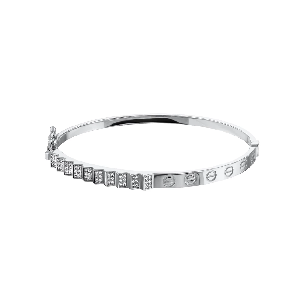 <p><strong>Размер:</strong></p> <p>ширина браслета - 3 мм</p> <p>размер декоративной части - 36 х 5 мм</p> <h2><strong>Золотой браслет с фианитами</strong></h2> <p>Изысканный жесткий браслет из белого золота 585 пробы поражает своей элегантностью и роскошным дизайном. Металл покрыт родием, что придает изделию глубокий белый оттенок и защищает от износа. Рельефная поверхность украшена безупречными белыми фианитами, излучающими сияние и придающими браслету неповторимое изящество. Каждое движение с этим браслетом привлекает внимание благодаря блеску камней. Браслет оснащен коробчатой застежкой с предохранительной петлей, что гарантирует безопасность и комфорт во время ношения. Это изысканное украшение станет незаменимым аксессуаром, который придаст образу нотки роскоши, элегантности и стиля.</p>