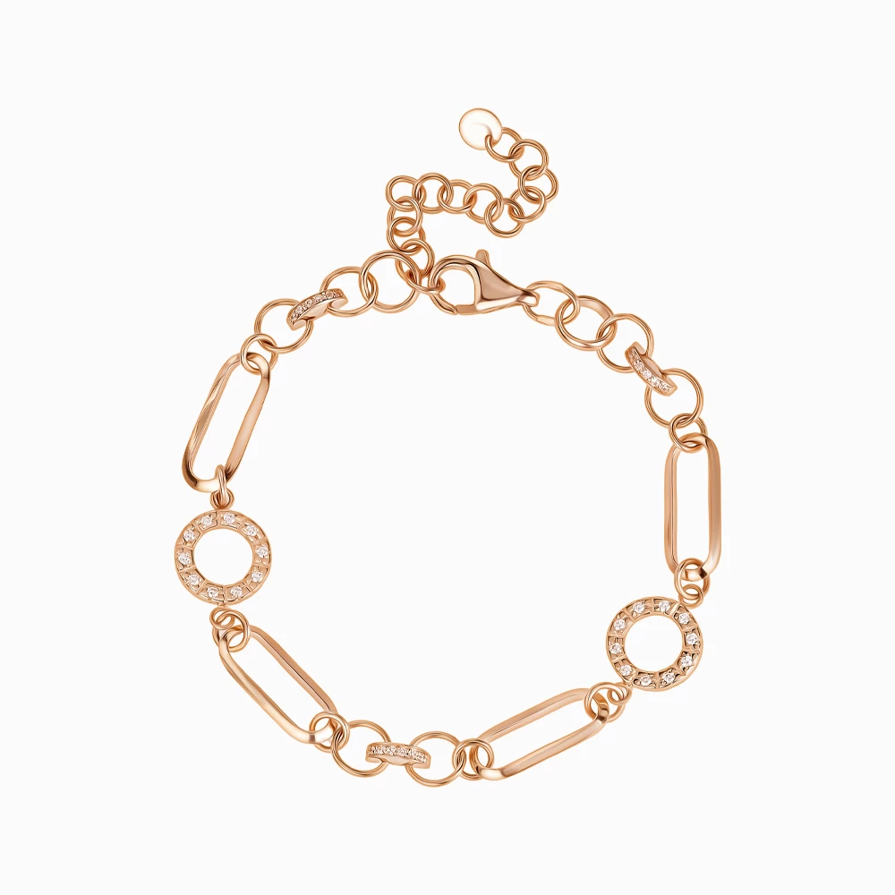 <p><strong>Размер:</strong></p> <p>ширина — 5-11 мм</p> <h2><strong>Золотой браслет с фианитами</strong></h2> <p>Стильный браслет из красного золота 585 пробы, олицетворяющий современную интерпретацию классического якорного плетения. Уникальное сочетание овальных и круглых звеньев создает динамический ритм, где чередуются гладкие удлиненные элементы и декоративные кольца с изящной текстурой. Контраст между полированными гладкими элементами и звеньями с фианитами создает интересную визуальную игру. Удобная карабиновая застежка обеспечивает надежное крепление, а дополнительная цепочка-удлинитель позволяет регулировать длину браслета для идеальной посадки. Этот браслет идеально подходит для создания многослойных композиций или как самостоятельный упор. Он гармонично дополнит как обычный look, так и праздничный образ, подчеркивая индивидуальный стиль и утонченность владелицы.</p>