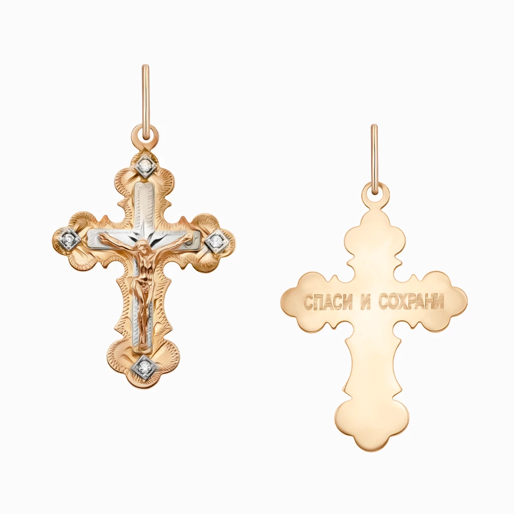 Хрестик з червоно-білого золота 585° з фіанітом, арт. 571295 (арт. 571295)