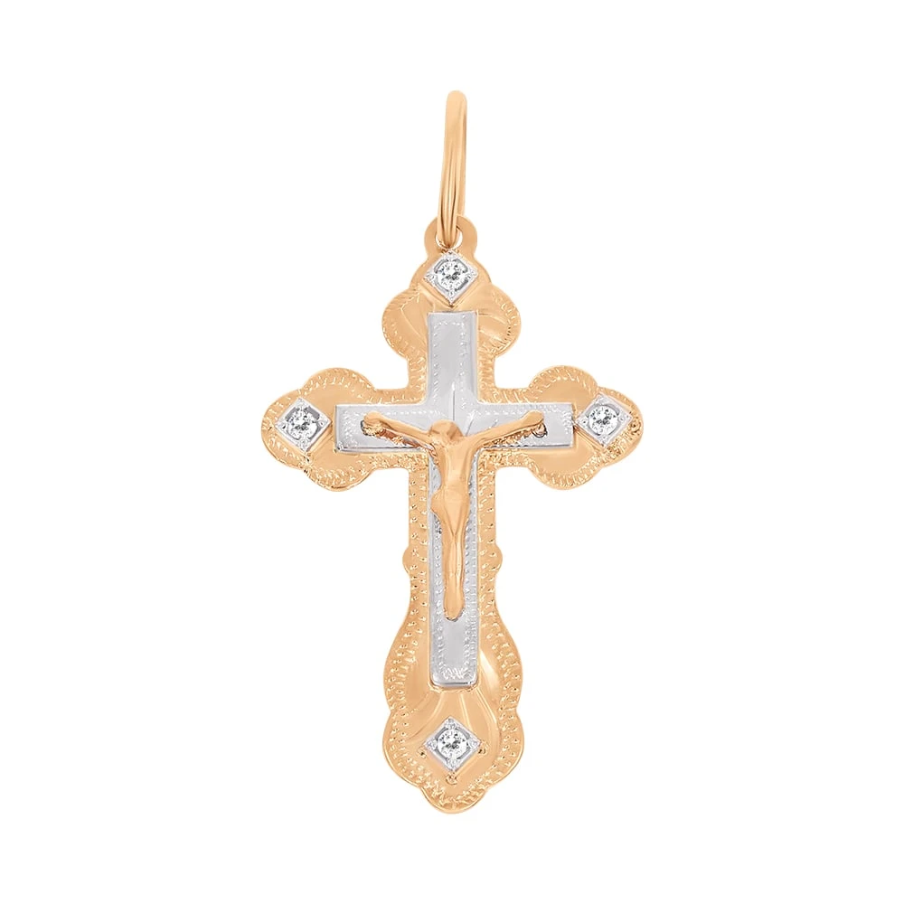 Хрестик з червоно-білого золота 585° з фіанітом, арт. 571254