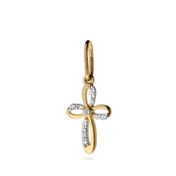 Золотой крест с куб. окс. циркония. Размеры изделия, мм: ширина - 8,7; высота - 15,4