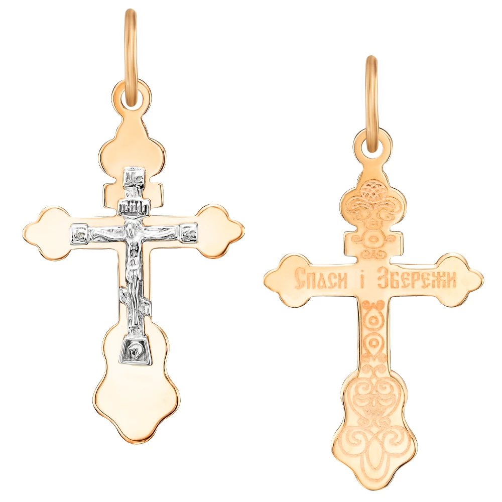 <p><strong>Размеры:</strong></p> <p>ширина – 20 мм</p> <p>длина с ушком – 28 мм</p> <p>длина без ушка – 23 мм</p> <h2><strong>Золотой крестик.</strong></h2> <p>Крестик изготовлен из красного золота 585 пробы, гармонично сочетаясь с белым золотом. На оборотной стороне изделия, поверхность которого украшена узорами в виде спиральных завитков и растительных элементов, присутствует надпись «Спаси і Збережи». На лицевой стороне драгоценности размещено миниатюрное распятие из белого золота. Тонкий слой родия на поверхности изделия обеспечивает ему дополнительный блеск и защищенность от внешних воздействий. Благодаря универсальному дизайну крестик можно легко сочетать с одеждой классического, делового, казуального, романтического, эклектического и других стилей. Поэтому подходит и для повседневного наряда, и праздничного. Хорошо смотрится как на цепочке из благородного металла, так и на обычном шнурке.</p>
