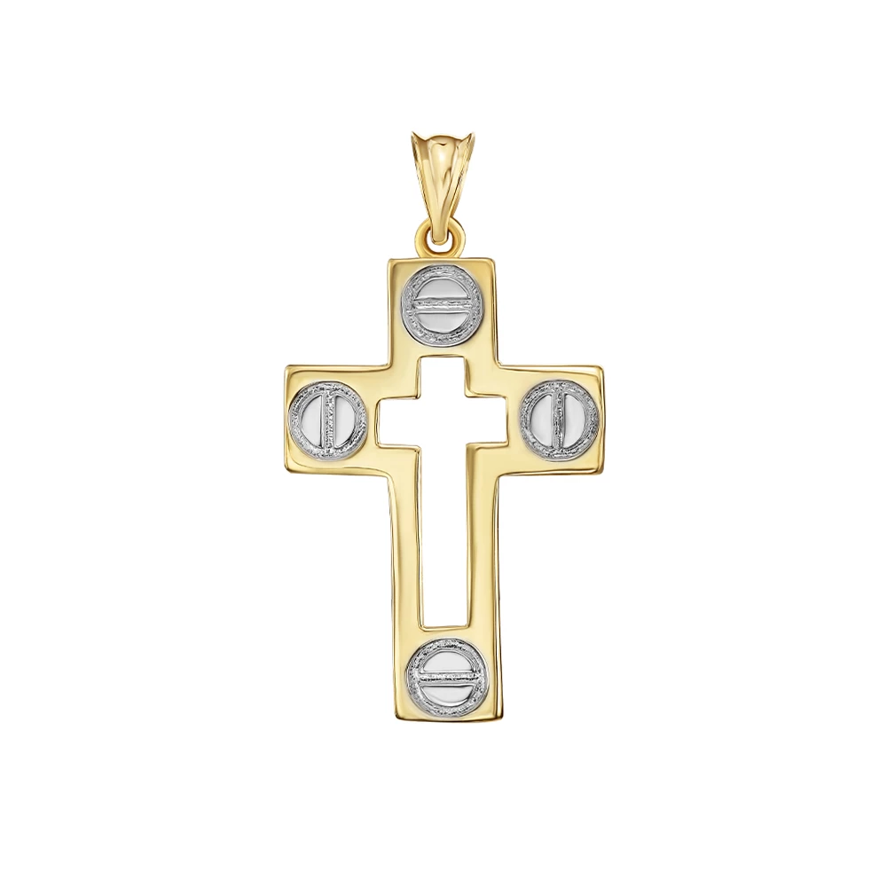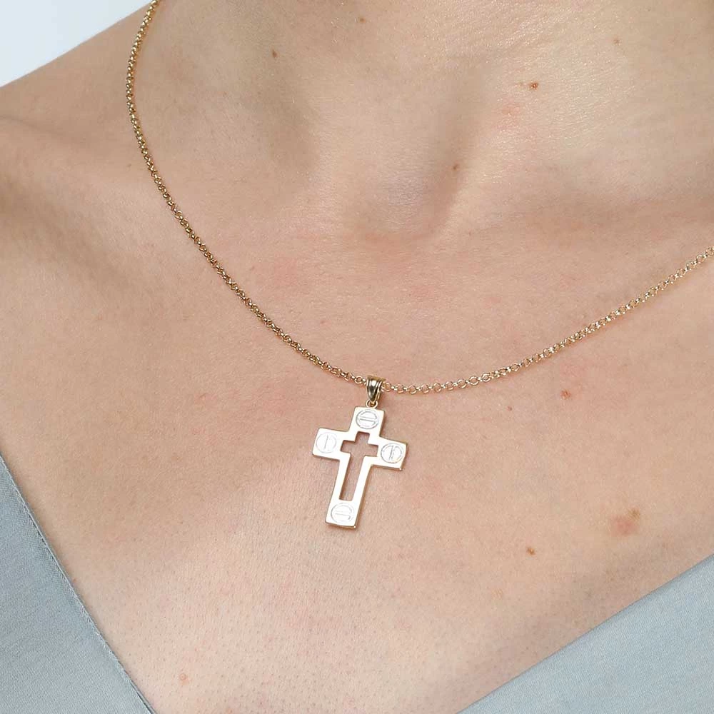 <p><strong>Размер:</strong></p> <p>Ширина 1,9 см</p> <p>Высота с ушком 3,3 см</p> <p>Высота без ушка 2,8 см</p> <p>Размер ушка 0,6 мм * 0,4 мм</p> <h2><strong>Золотой крестик.</strong></h2> <p>Наш дизайнерський крестик, выполненный в сочетании белого и красного золота 585 пробы, - это истинное мастерство ювелирного искусства. Уникальный дизайн, вдохновленный украшениями бренда Cartier, в сочетании с качеством материала, создают непревзойденный аксессуар. С вставками в виде винтиков из белого золота 585 пробы, он отражает изысканный вкус своего владельца и его особое видение стиля.</p> <p>Неповторимый дизайн сделает его прекрасным дополнением к любому образу - как повседневному, так и праздничному. Безупречный декор, удобный размер и универсальное ушко, подходящее под разные цепочки и шнурки, делают этот крестик уникальным произведением ювелирного искусства.</p> <p>Религиозные надписи на крестике отсутствуют.</p>