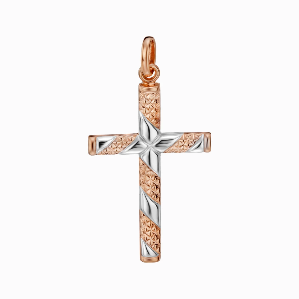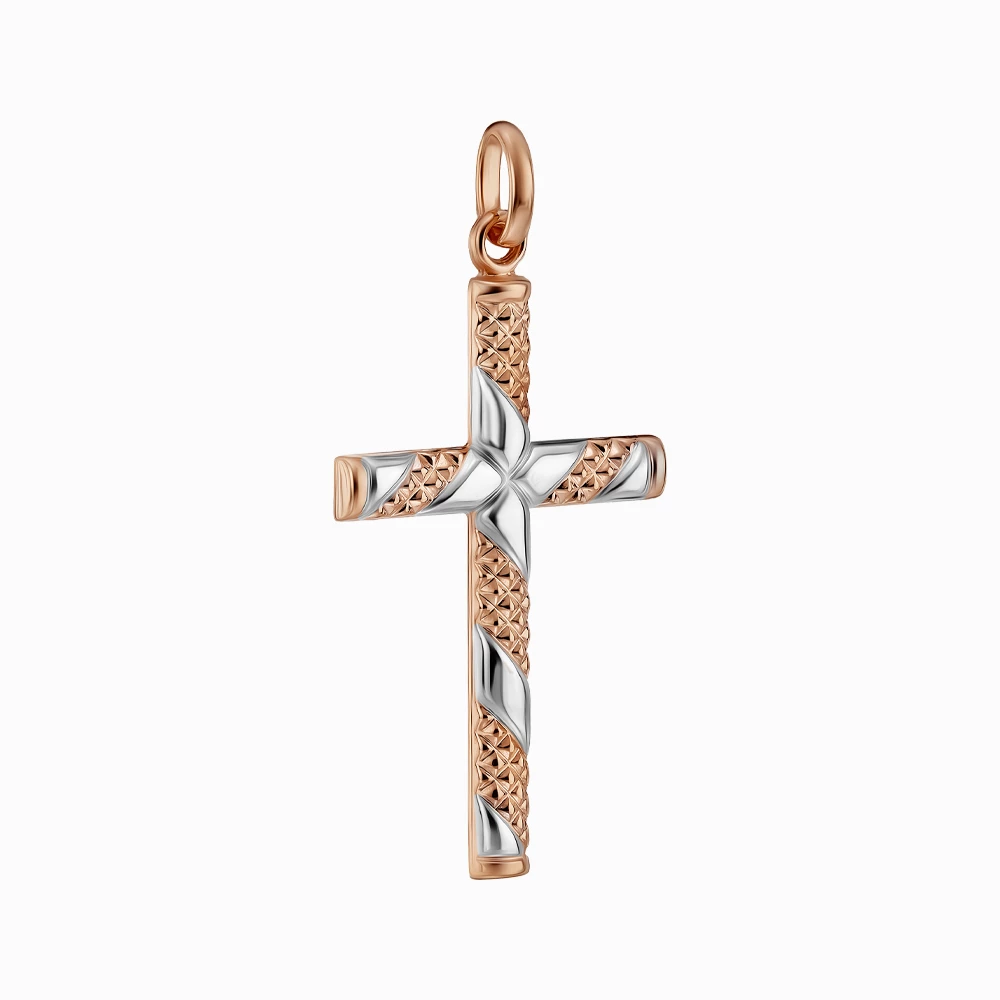 <p><strong>Размер:</strong></p> <p>длина с ушком — 35 мм</p> <p>длина без ушка — 30 мм</p> <p>ширина — 17 мм</p> <h2><strong>Золотой крестик</strong></h2> <p>Утонченный и символический, этот крестик изготовлен из сочетания красного и белого золота 585 пробы. Сдержанный, но в то же время оригинальный дизайн с чередованием фактурной поверхности и гладкого родированного золота создает эффект объемного узора, что сразу привлекает взгляд. Лаконичная форма делает это украшение универсальным – оно будет подходить как женщине, так и мужчине. Удобное и надежное ушко позволяет носить крестик с цепочками разного плетения. Это не просто ювелирное изделие, а личный символ веры, стиля и элегантности, прекрасно дополняющий любой образ своего владельца.</p>