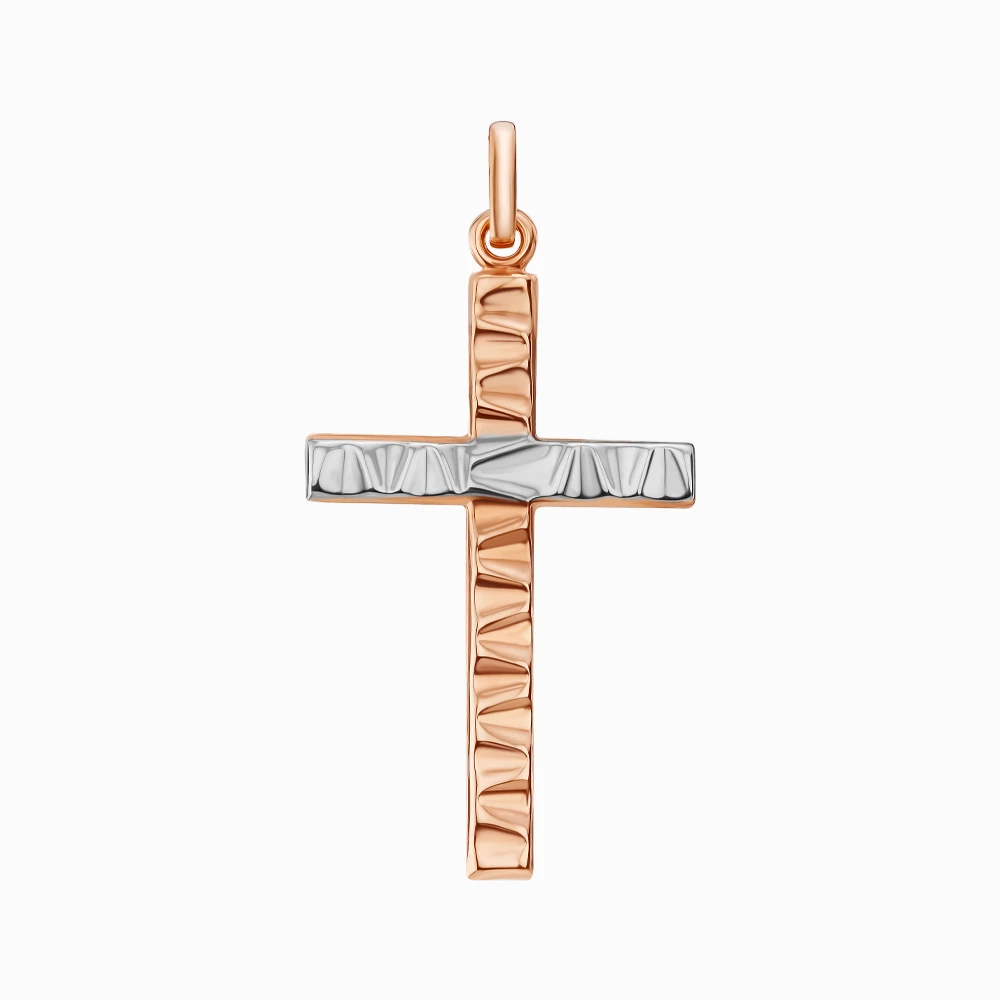 <p><strong>Размеры:</strong></p> <p>длина – 3,4 см, без ушка - 3,0 см;</p> <p>ширина – 1,7 см</p> <h2><strong>Золотой крестик</strong></h2> <p>Представленное ювелирное изделие состоит из красного и белого родированого золота 585 пробы. При изготовлении крестика была применена технология алмазная грань. Она придает благородному металлу еще больше ослепительного блеска. Обработанное золото выглядит роскошно, нарядно и высоко эстетично. Носить украшение можно с цепочками или ювелирными шнурками – их вы найдете в нашем онлайн-каталоге в большом разнообразии.</p> <p>Изделие хорошо подойдет для повседневной носки с одеждой любого фасона или стиля. Украшение будет гармонично сочетаться с другой ювелирной продукцией из белого или красного золота.</p>