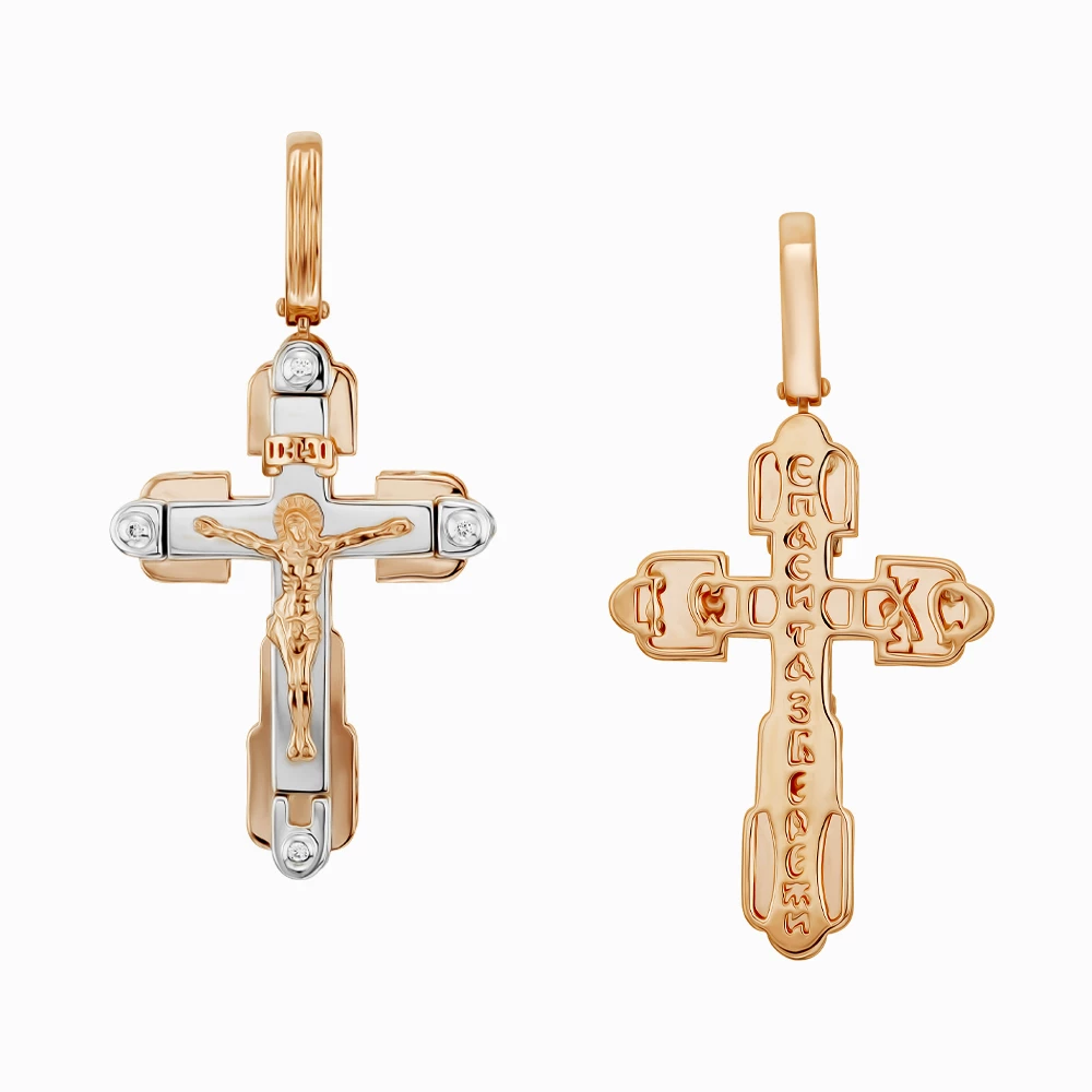 Хрестик з червоно-білого золота 585° з фіанітом, арт. 270135 (арт. 270135)