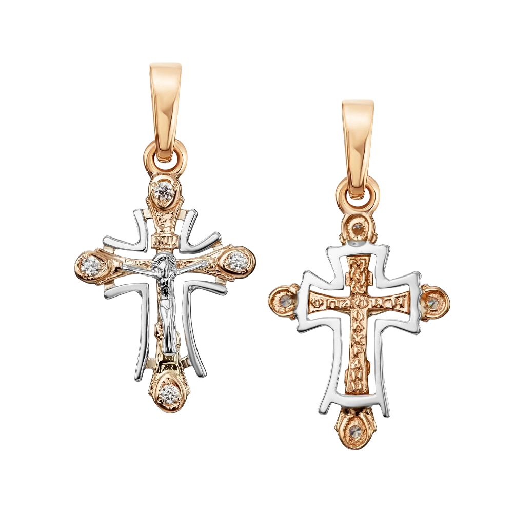 <p><strong>Размеры:</strong></p> <p>ширина - 1,4 см</p> <p>высота с ушком - 2,1 см</p> <p>высота без ушка - 1,9 см</p> <p>размер ушка - 7 мм * 4 мм</p> <h2><strong>Золотой крестик с распятием и кубичным окс. циркония.</strong></h2> <p>Золотой крестик выполнен в комбинации красного и белого золота 585 пробы, что позволяет легко сочетать его с любыми другими Вашими украшениями. Необычный воздушный дизайн, в котором соединяются два креста разных цветов подчеркнет оригинальность и изысканный вкус его владелицы. В центральной части изделия на кресте из красного золота расположено Распятие Христово в белом золоте, а позади красного креста расположено очертание креста в белом золоте более геометрической формы. На верхней перекладине нанесена надпись “ІНЦІ”, которая расшифровывается как “Иисус Назарянин, Царь Иудейский”. На обратной стороне крестика присутствует надпись “Спаси и Сохрани” согласно православных традиций. Также изделие украшено четырьмя кубическими цирконами белого цвета - по одному на каждом краю изделия, что придает дополнительное сияние и блеск изделию.</p> <p>Заказывайте украшение на сайте, покупайте в наших магазинах или оформляйте оплату частями уже сейчас и получайте фирменную упаковку в подарок.</p>