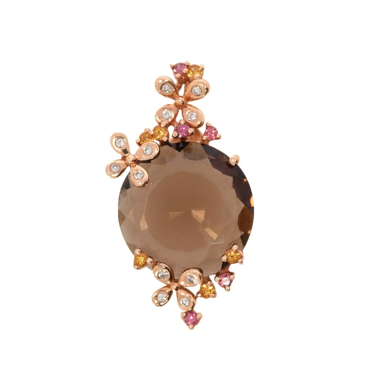 Золотой подвес с кварцем дымчатым и бриллиантами.