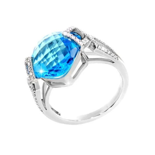 Подвес из белого золота с топазом Swiss Blue и бриллиантами. Центром этого золота подвеса является топаз Swiss Blue, источник чистоты и нежности. Подвес смотрится очень нежно и романтично.