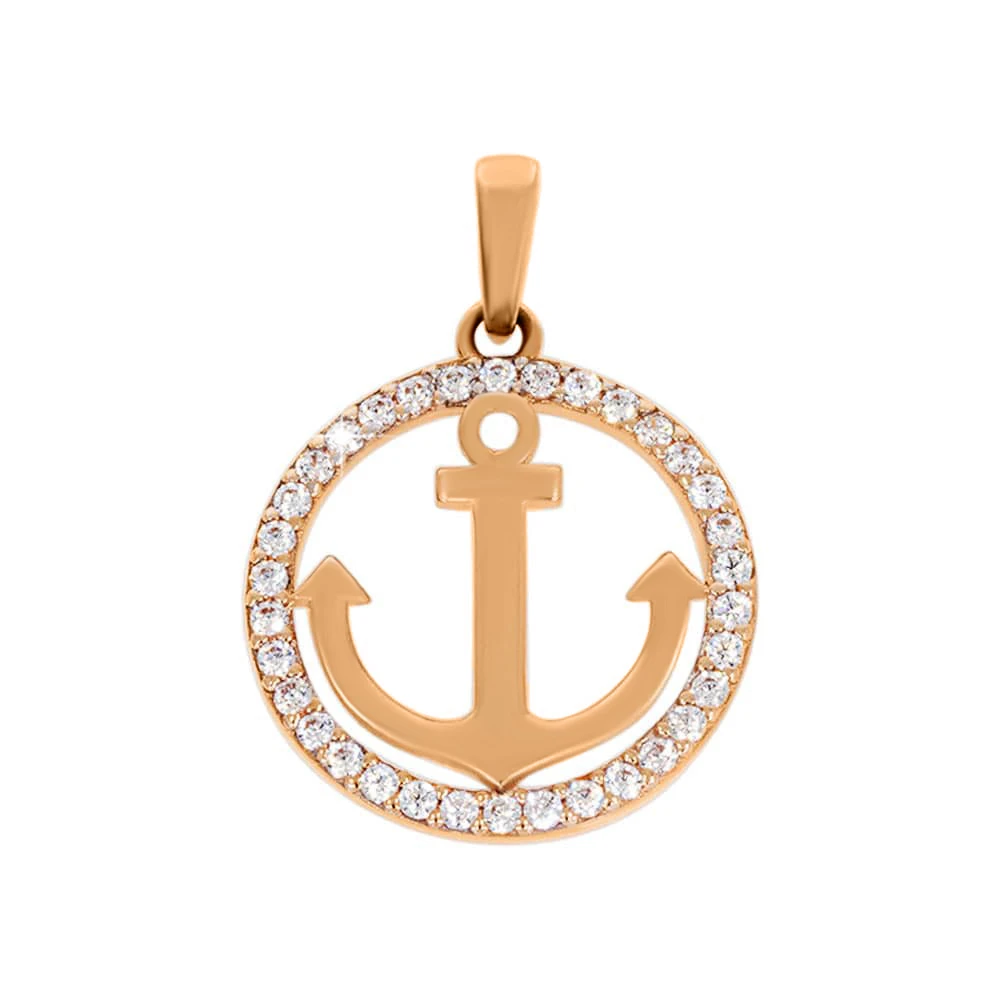 <p><strong>Размер:</strong></p> <p>Диаметр подвесной части - 1,3 см</p> <p>Длина ушка - 4,0 мм</p> <h2><strong>Золотой подвес с фианитом.</strong></h2> <p>Круглый подвес из красного золота 585 пробы оформлен вставками фианитов по кругу. Корнеровый закреп позволяет раскрыть яркий блеск камней, а также придает украшению максимальной практичности и акцентирует внимание на основной детали. Центральным элементом является якорь, который считается символом безопасности и надежности. Этот подвес эффектно подчеркивает повседневный образ, а также будет оберегом и олицетворением душевного спокойствия.</p>