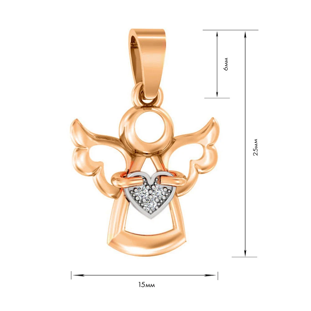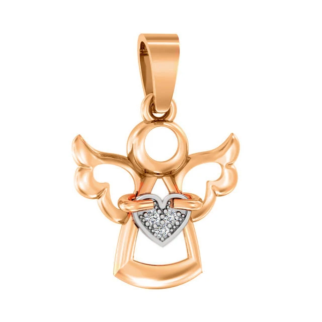 Подвеска «Ангел» из красного золота 585 пробы с сердечком, сияющими фианитами, станет чудесным оберегом и оригинальным дополнением к вашему образу. Изысканная подвеска в виде миниатюрного ангела, который держит в руках сердце, подчеркнет красоту и юной девушки, и более взрослой женщины. Золотая подвеска «Ангел» - прекрасный подарок для любимого и родного человека.