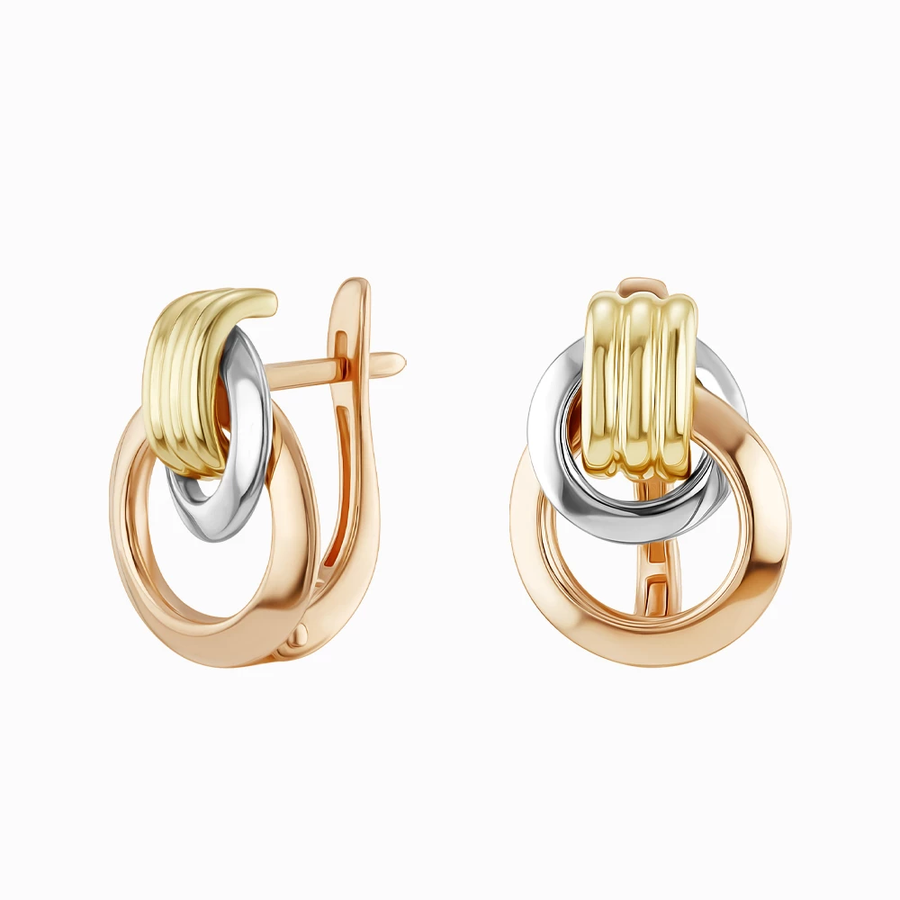Сережки з червоно-жовто-білого золота 585°, без вставки, арт. 220720